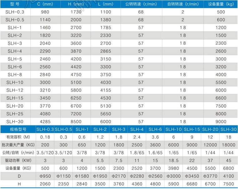 2)混合能力大,裝料系數比滾筒式提高20——30%,比V型混合機提高25——40%。