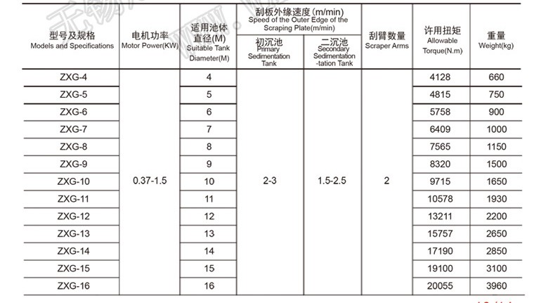 通過(guò)減速驅(qū)動(dòng)和懸掛式組件的傳動(dòng),由刮板將污泥刮集到中心集泥槽,依靠?jī)羲畨毫虮门懦龀赝?。采用中間進(jìn)水和排泥,周邊排水,保證水流均勻,利用液位差自吸式排泥配有浮渣刮集排除裝置和過(guò)載保護(hù)裝置。